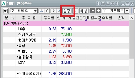 1.1601 관심종목창에서 설정 버튼을 클릭한다.