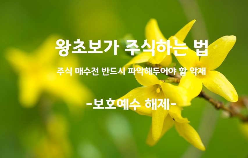 주식 종목매수에서 대표적인 악재로 분류되는 것에는 유상증자, 주식병합, 보호예수 해제 같은 것들이 있다. 유상증자나 주식 병합과 같은 경우는 사전 공시나 뉴스를 통해 인지가 가능하지만 보호혜수의 경우는 직접 알아보지 않으면 놓치기 쉽기 때문에 특히 조심해야 한다.