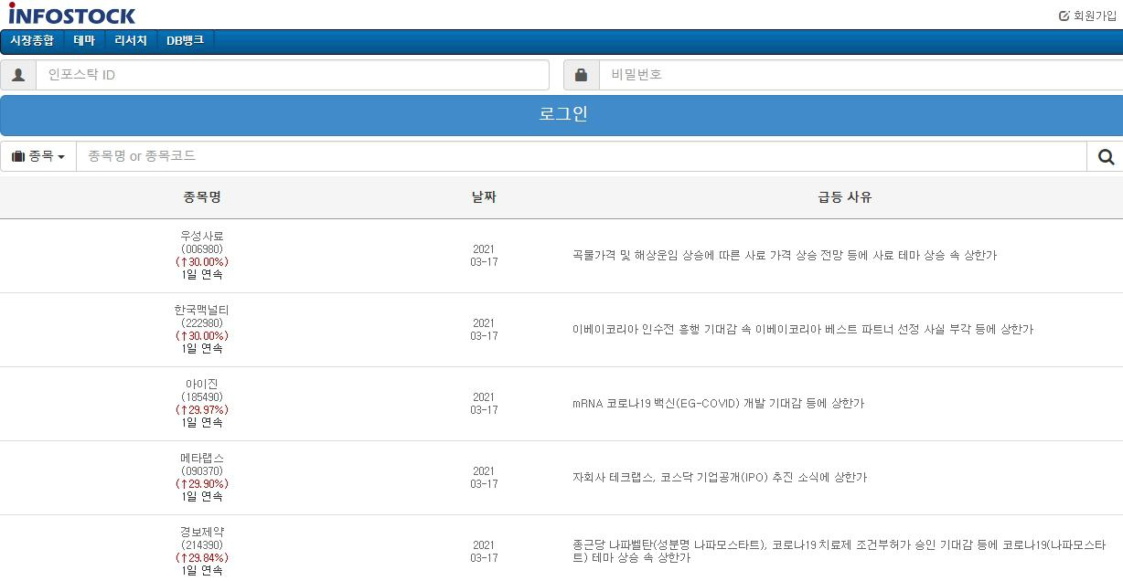 급등주의 급등 원인을 알려주는 인포스탁 급등주 사이트를 이용하라.