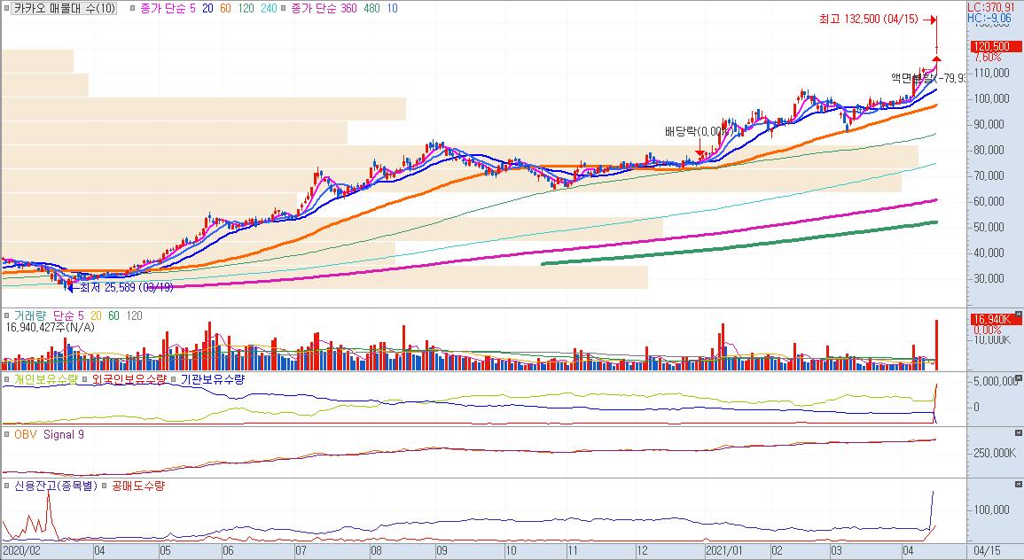 위의 표에서 보듯 증권사별로 제시하고 있는 목표주가에 비해 현재의 주가 대비 상승여력이 평균 15%이상 여유가 있다. 카카오는 단기 투자가 아닌 장기투자 종목이므로, 장기 분할 매수 전략을 세워 주가 눌림목 매매로 대응한다면 앞으로 장기 우상향이 가능한 종목으로 분석된다.