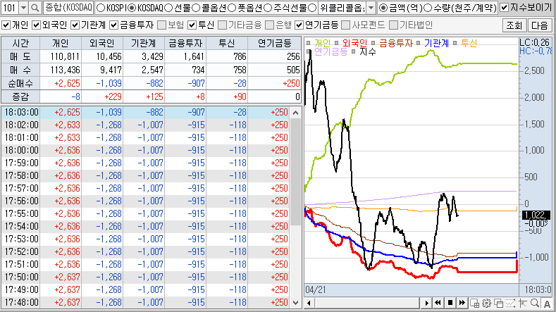 오늘 코스닥 매매주체별 거래금액
