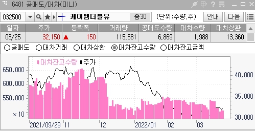 전체메뉴 > 주식 > 신용/자사주/공매도 > 6481 공매도/대차(미니)
