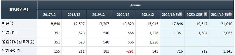 코스맥스는 코로나와 한한령과는 별개로 꾸준히 매출액이 성장하고 있는 성장주다. 연구개발 위주의 기업형태로 인해 외부의 충격에 상대적으로 덜 민감함 모습을 보여주고 있다.