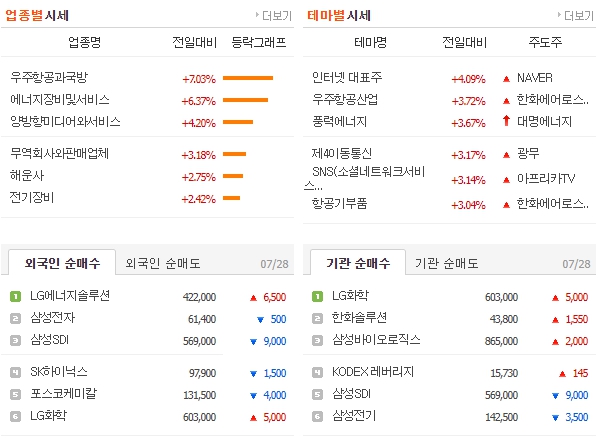 오늘 주식 시장에서 전일대비 가장 높은 상승율을 보여준 급등주 섹터인 항공 우주 방산 관련주의 톱3 순위를 간단하게 살펴보았다. 주식 초보거나 급등주 추천을 찾아다니는 초보 투자자라면 매일 매일의 수급 상위 종목들만 파악해두어도 왠만큼 시장의 분위기는 읽을수 있으니 순환매 섹터를 잡아 투자하기가 쉬울 것이다.