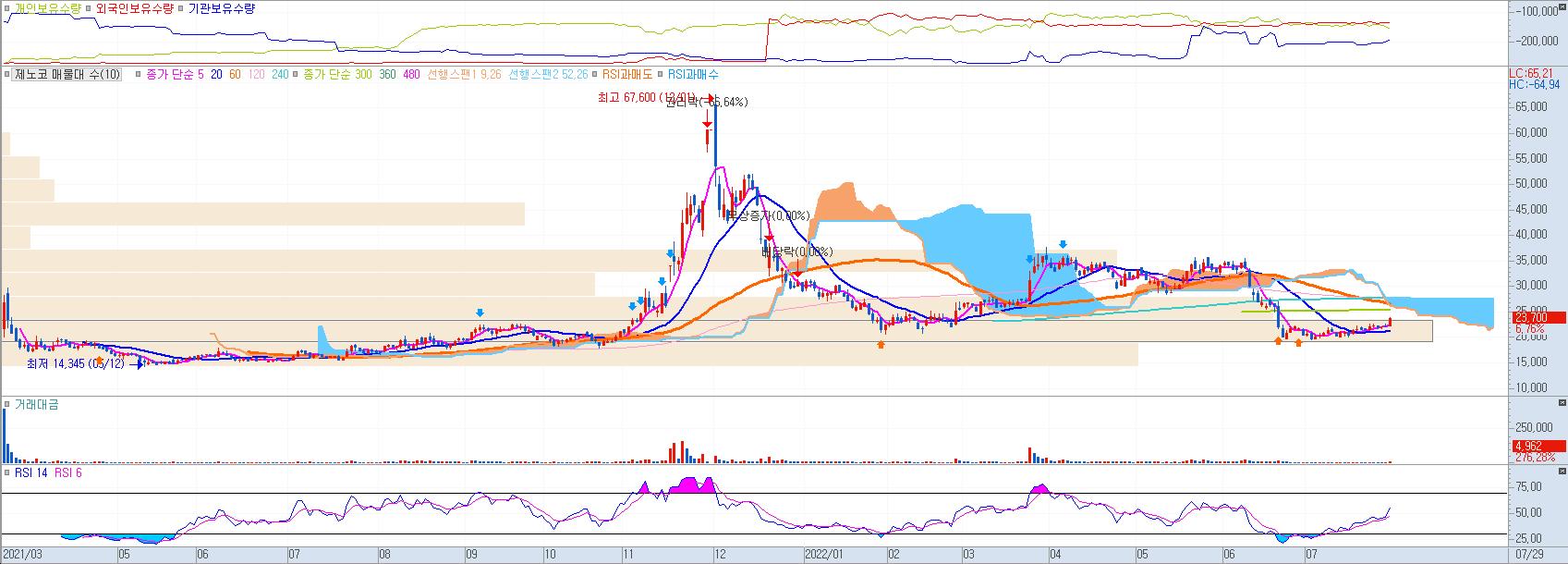 제노코는 에어버스와 록히드마틴의 파트너사로서 윤석열 정부들어 우주청 설립을 공표한 상태라 앞으로 우주, 방산 분야가 반복적인 테마로 주목받는다면 급등주 패턴을 보일 가능성이 높지 않을까? 오늘 실시간 급등주에 오른만큼 주가의 위치로만 보더라도 공략에 부담이 없는 자리다.