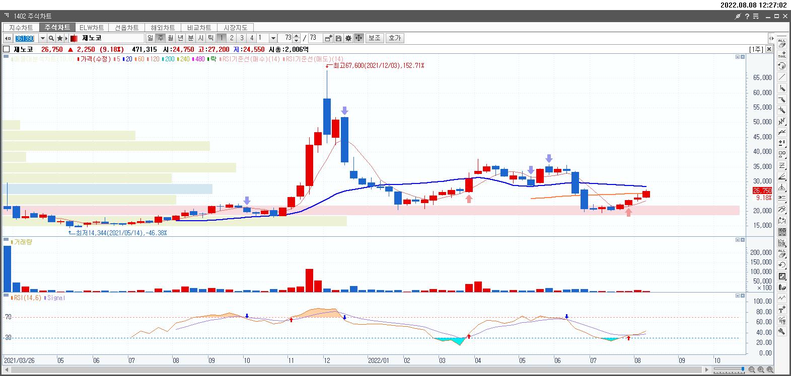 제노코는 다누리 발사 성공이후 부터 주목되는 한국의 항공우주 분야 성장에 관련된 항공우주 통신부품 관련주인데다, 우크라이나 사태로 급성장하고 있는 방산 관련주다.