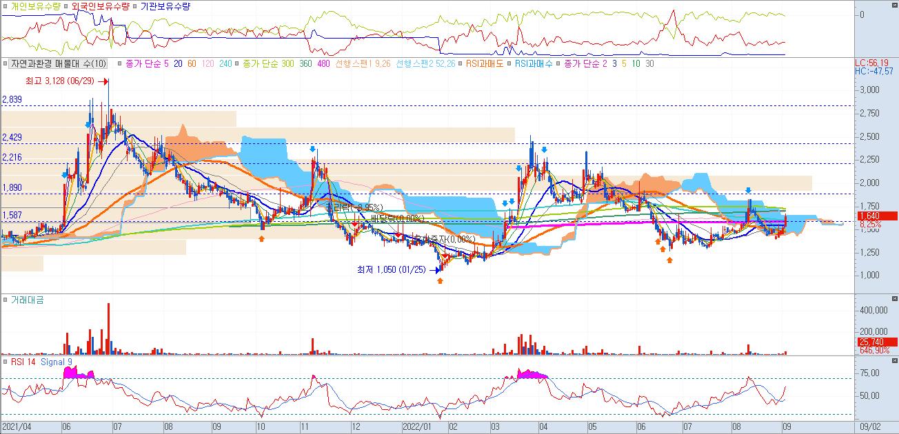 자연과환경은 테마주로 유명한 종목으로 4대강 시절 이름을 날렸던 테마주 중 테마주..